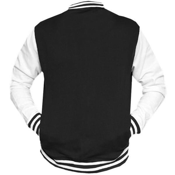 Create your own custom varsity jackets for you, your sports team or university. Add logos, designs and text to create an awesome custom varsity jacket you or your team will love!Our personalised varsity jackets are available in sizes XS to 2XL so perfect for guys and girls of all age and size. The front has press stud closures and features two pockets with a small opening for an earphone cord to make listening to your favourite music that little easier. The contrast coloured sleeves provide an all american style feel which looks especially great round campus.